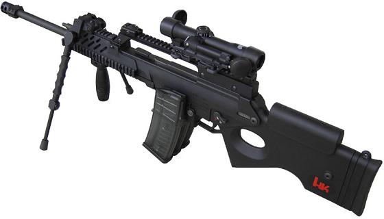 ปืนไรเฟิลซุ่มยิงชื่อ SL8 ของบริษัท H&K ปืนนี้ถูกพัฒนาจากปืน G36 น่ะคับ ใช้กระสุนไรเฟิลขนาด .223 CALIBER หรือที่รู้จักในนามกระสุน 5.56 x 45 MM นี้เอง บรรจุกระสุนประมาณ 10-30 นัดได้ พลังทำลายสูงอยู่เเล้วปืนนี้ด้วยใช้กระสุน 5.56 ด้วยหยุดยั้งเป้าหมายต่อสิ่งมีชีวิตดีเยี่ยม ใช้ระบบปฏิบัติการยิงเเบบเเก๊สโอเปอเรท ระบบการยิงเป็นเเบบ SEMI-AUTO ยิงกึ่งอัตโนมัติ เป็นปืนที่มีดีไซด์ที่จะเท่ห์เป็นพิเศษกว่าปืนของ H&K หลายรุ่นเลยทีเดียว เป็นปืนที่จัดว่ามีลูกเล่นเเพรวพราวเหมือนกัน ฟังก์ชั่นเยอะ เเถมยังติดกล้องอินฟราเรด กล้องมองกลางคืนได้ด้วย